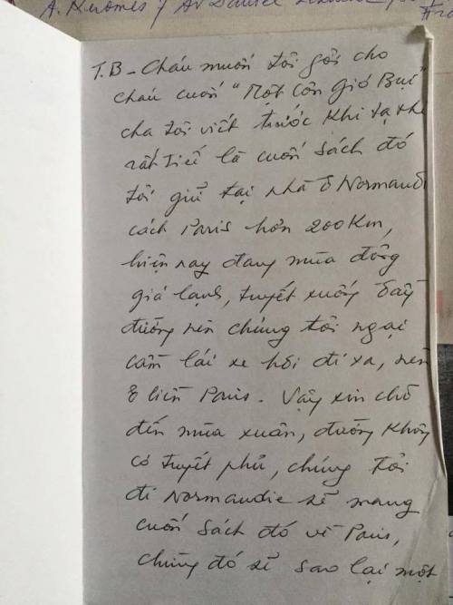 Bút tích của bà Diệu Chương gửi ông Điền.