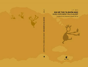 Bìa tập thơ song ngữ Việt/Anh “Khi kẻ thù ta buồn ngủ/When our enemy falls asleep” do NXB Giấy Vụn xuất bản lần thứ nhứt tại Sài Gòn quý I/2010.