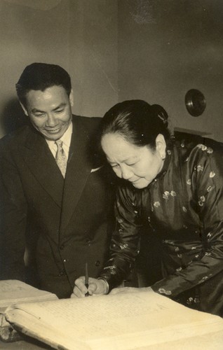 Bà Bền đang ký sổ bộ hôn nhân của ba má tôi (ngày 24-9-1954).