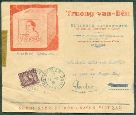 Một phong bì thư của Hãng xà-bông Việt-Nam năm 1936.