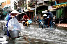 Hình (Trần Công Nhung): Miền Nam mưa nắng hai mùa (cảnh lụt lội ở đường Bùi Viện, Saigon).
