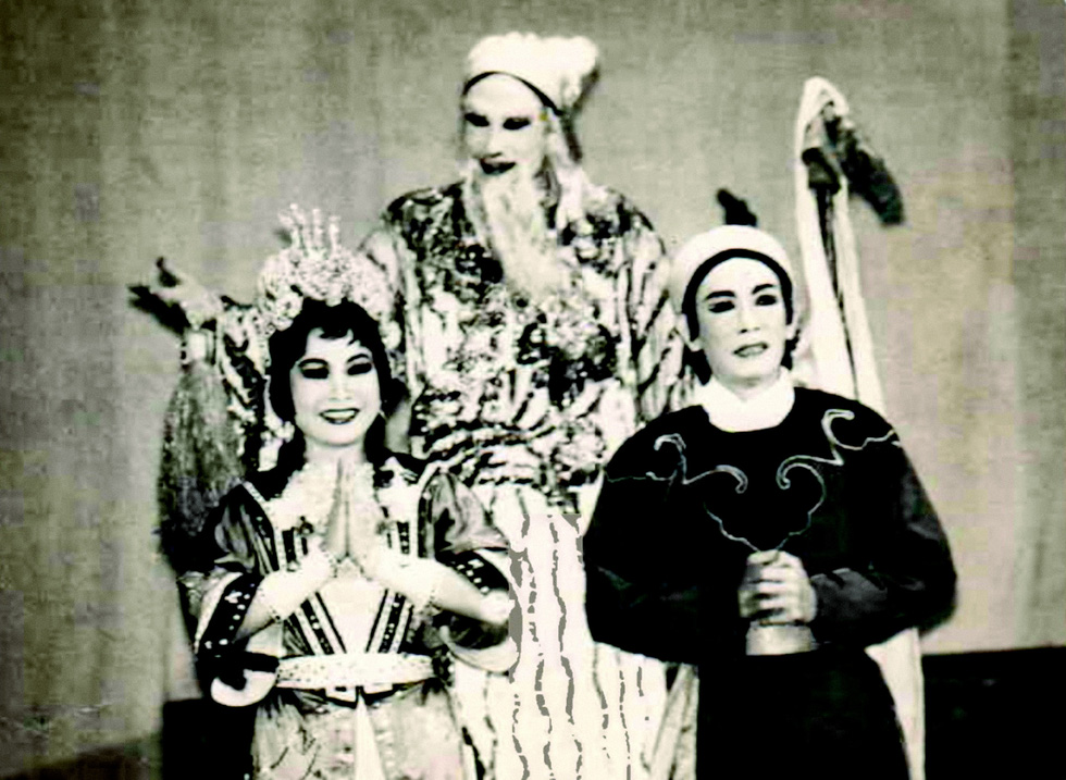 Từ trái qua: nghệ sĩ Tú Lệ, Ca Lê Hồng và Hoàng Khanh trong vở Nàng tiên mẫu đơn.