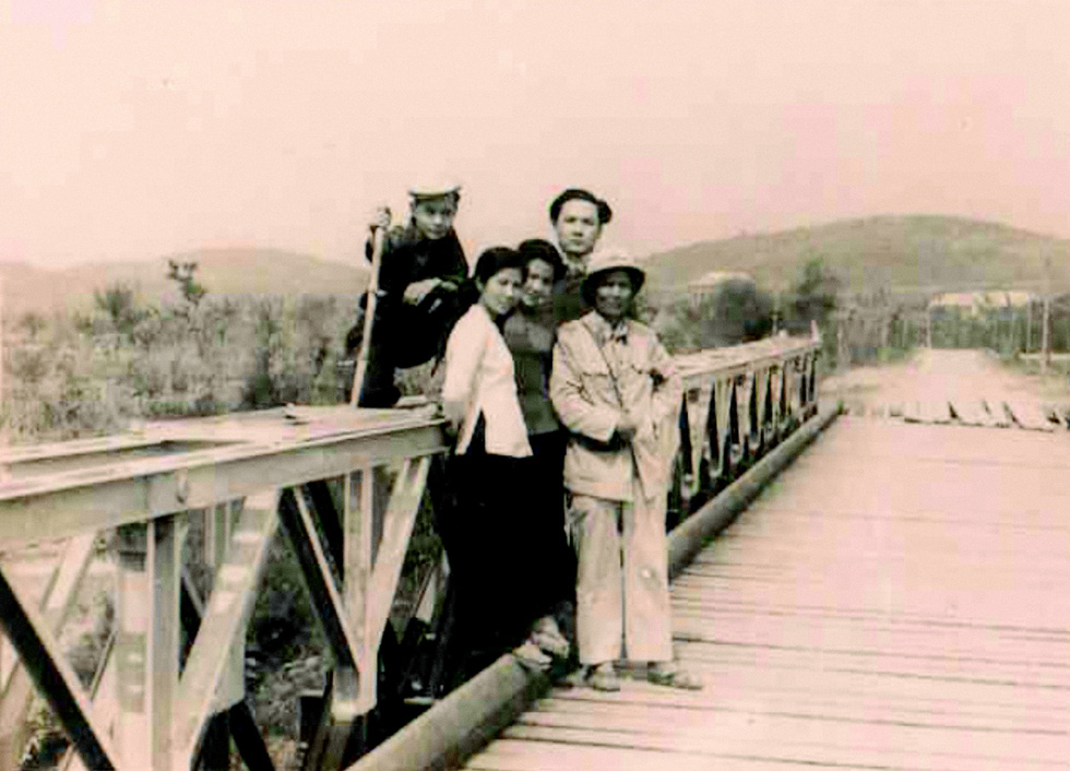 Đoàn chụp ảnh lưu niệm khi diễn ở chiến trường Điện Biên Phủ.