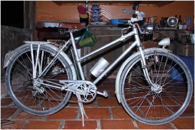 Mỗi chiếc xe đạp xưa còn trang bị một ống bơm (pompe) để phòng khi lốp xe xuống hơi. Bên cạnh đó người ta gắn một chiếc đy-na-mô (dynamo – bộ phận phát điện làm sáng đèn để đi vào ban đêm). Tôi còn nhớ khi tháo tung một cái dynamo cũ thấy có một cục man châm gắn vào một trục để khi trục quay sẽ sinh ra điện.