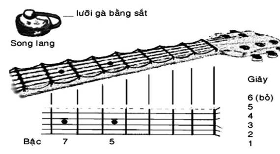 Đàn thay vì 6 dây, giờ đây bớt đi một dây còn lại 5, bởi dây thứ 6, chơi nhạc truyền thống không có nhu cầu.